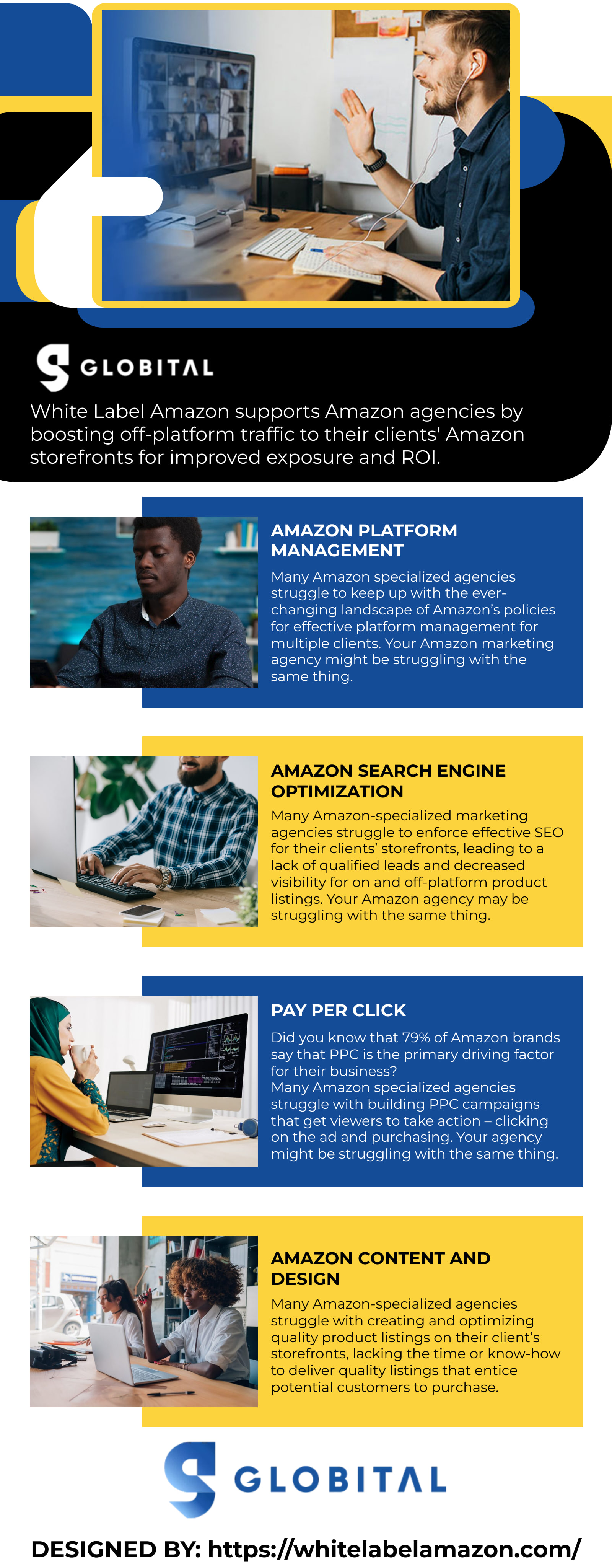 We provide white-label Amazon marketing services that support your Amazon-specialized agency by elevating you as an industry leader among the competition by rapidly improving off-platform traffic that steers directly to your clients’ Amazon storefronts. This enhanced visibility means more potential customers become familiar with your clients’ Amazon shop offerings, leading to higher conversion rates, enhanced brand reputation, and increased revenue.